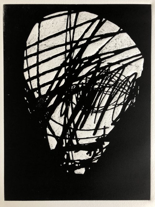 “Cast XXXI’ – Ink monotype on glass + shadow on card, 30×22.5cm