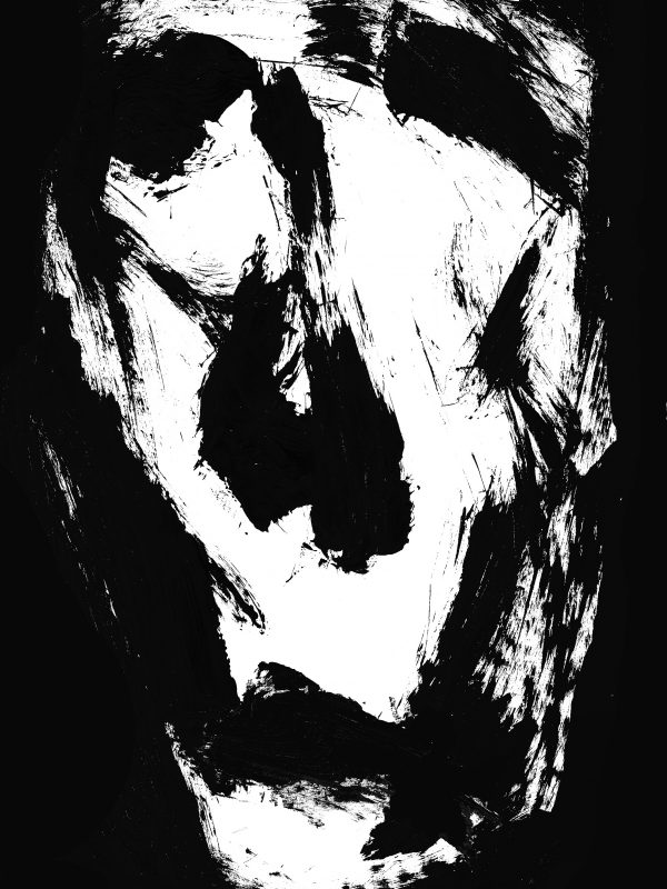 The single, continuous, rapidly drawn line appears suspended, and the shadow it casts encourages the viewer to look beyond the surface, behind the mask.
