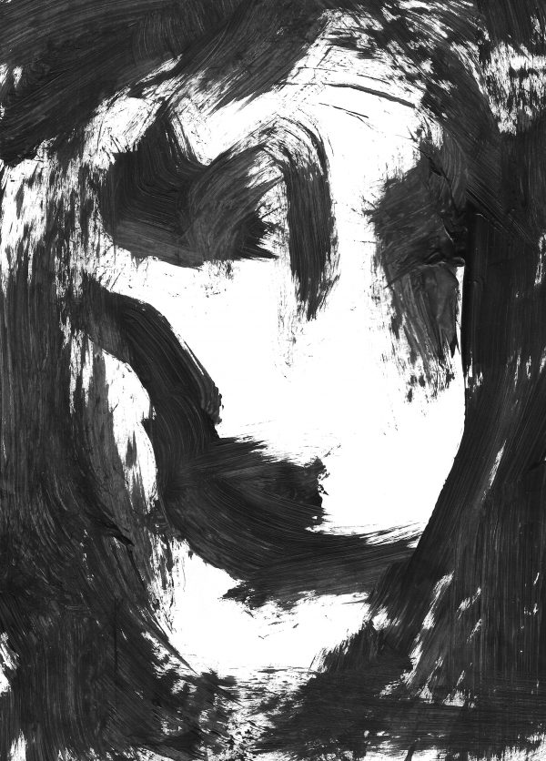 “Cast XXIX’ – Ink monotype on glass + shadow on card, 30×22.5cm