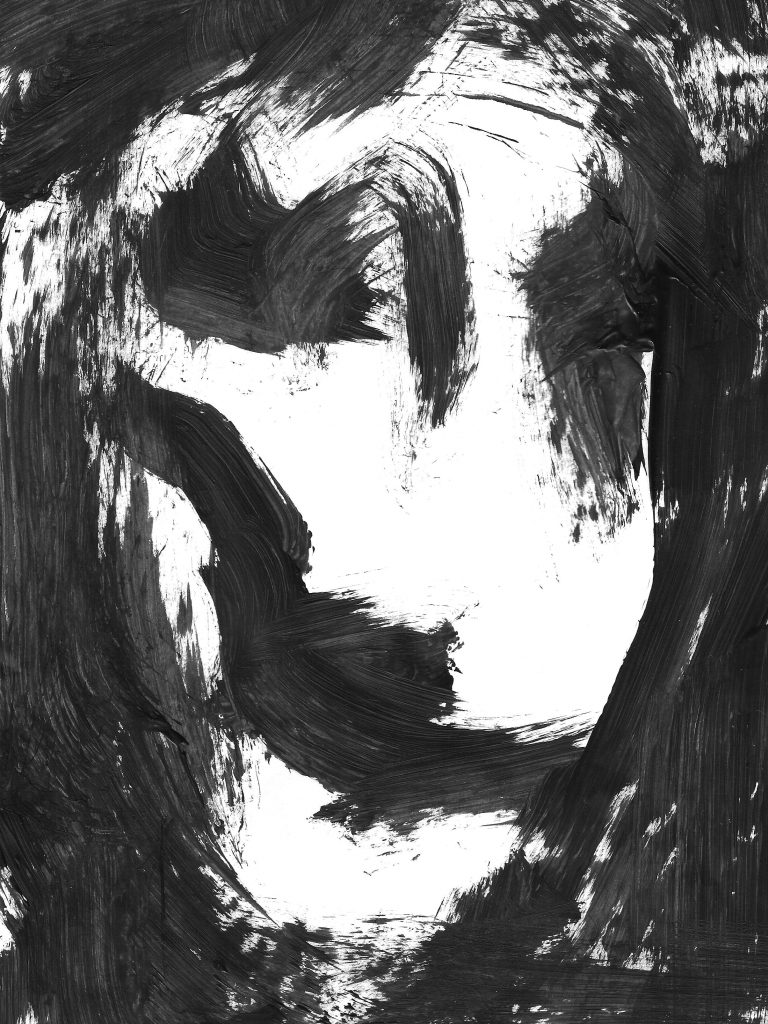 Self-Portrait Study #1, monoprint on paper laid on board, 40x30cm.
